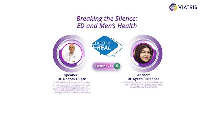 In this Podcast, Dr. Shasidhar in conversation with Dr. Padmini explains on how to support men in their ED burden